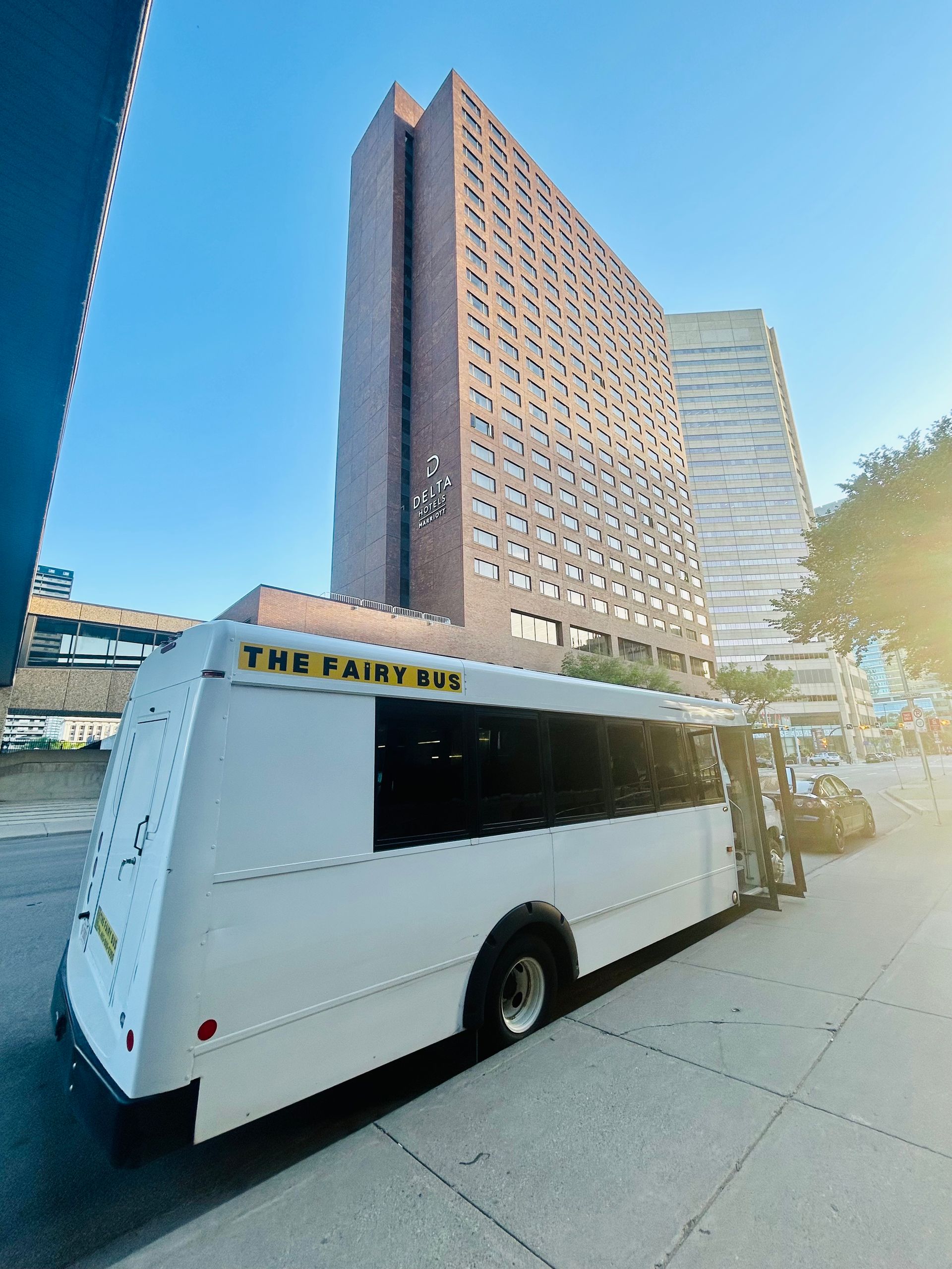 Pick-up is across the hotel along Harry Hays Building loading zone on 4th Avenue.